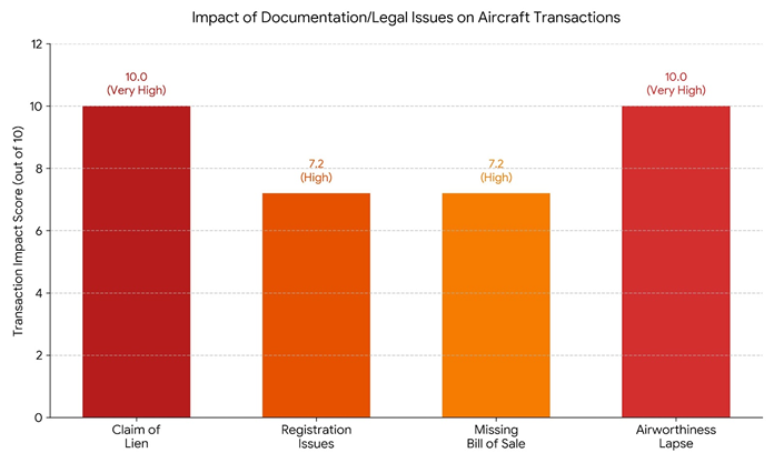 - A Claim of Lien and an Airworthiness Lapse carry the maximum impact score of 10.0 each. These problems are usually total deal-breakers, halting a sale until a legal or mechanical solution is found.